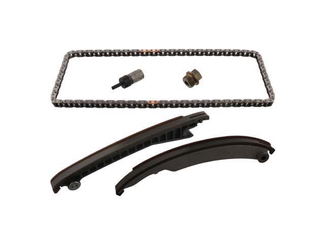 Contains: (Qty.) (1) Timing Chain, (2) Timing Chain Rails, (1) Timing Chain Tensioner, (1) Timing Chain Tensioner Screw Plug.